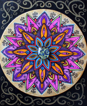 A mandala, Sanskrit word that means “circle” is a complex abstract design that is usually circular in form. From the center point arrays of symbols, shapes and forms emanate.